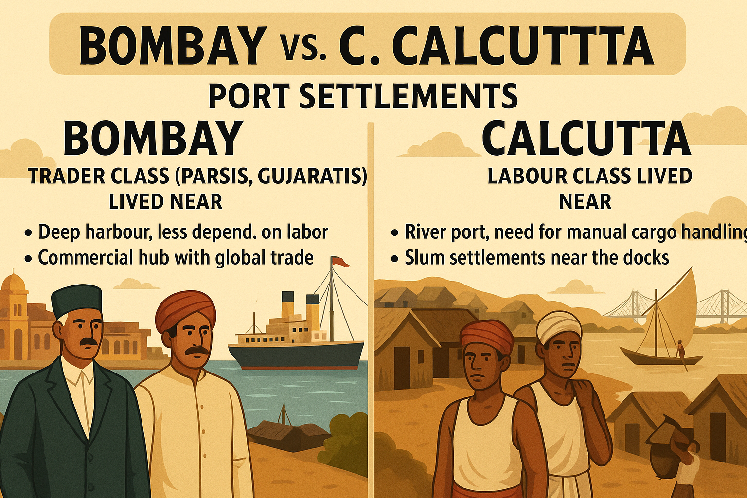 कलकत्ता के बंदरगाह पर लेबर- सर्विस क्लास,बंबई में बड़े कारोबारी